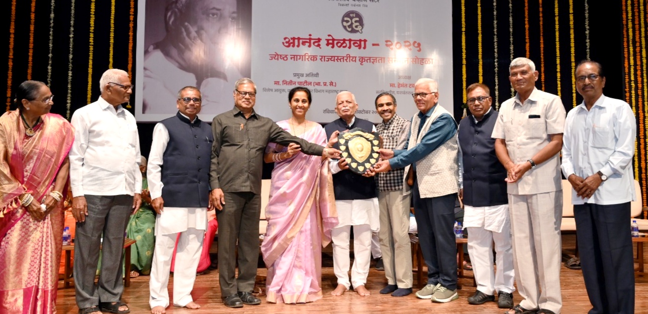 मुंबई : यशवंतराव चव्हाण सेंटर, मुंबई यांच्या वतीने राज्यस्तरीय “ज्येष्ठ नागरिक कृतज्ञता सन्मान पुरस्कार वितरण सोहळा” मोठ्या उत्साहात पार पडला. या कार्यक्रमाला प्रमुख पाहुणे म्हणून माननीय नितीन पाटील (विशेष आयुक्त, वस्तू व सेवा कर विभाग, महाराष्ट्र) तसेच यशवंतराव चव्हाण सेंटरच्या कार्याध्यक्षा आणि खासदार सुप्रिया सुळे उपस्थित होत्या.