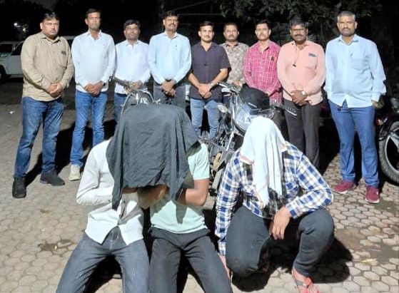 अटक करण्यात आलेले आरोपी असे आहेत कृष्णा जगन्नाथ भोसले (वय २८, रा. पाखरसांगवी), जितीन सहदेव गायकवाड (वय १९, रा. काळमाथा, ता. औसा), सौरभ सुभाष भोळे (वय १९, रा. सोना नगर, लातूर)